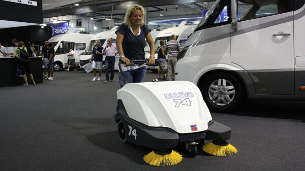 The new Dulevo 74 industrial sweeper is a compact-sized machine containing all the technology of larger machines used in heavy industry.